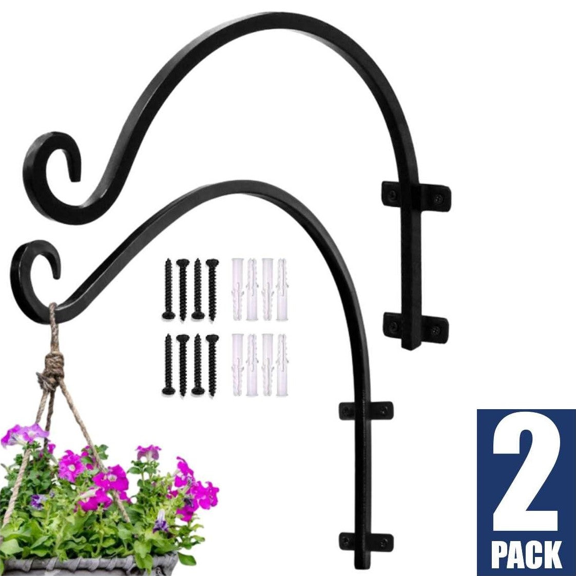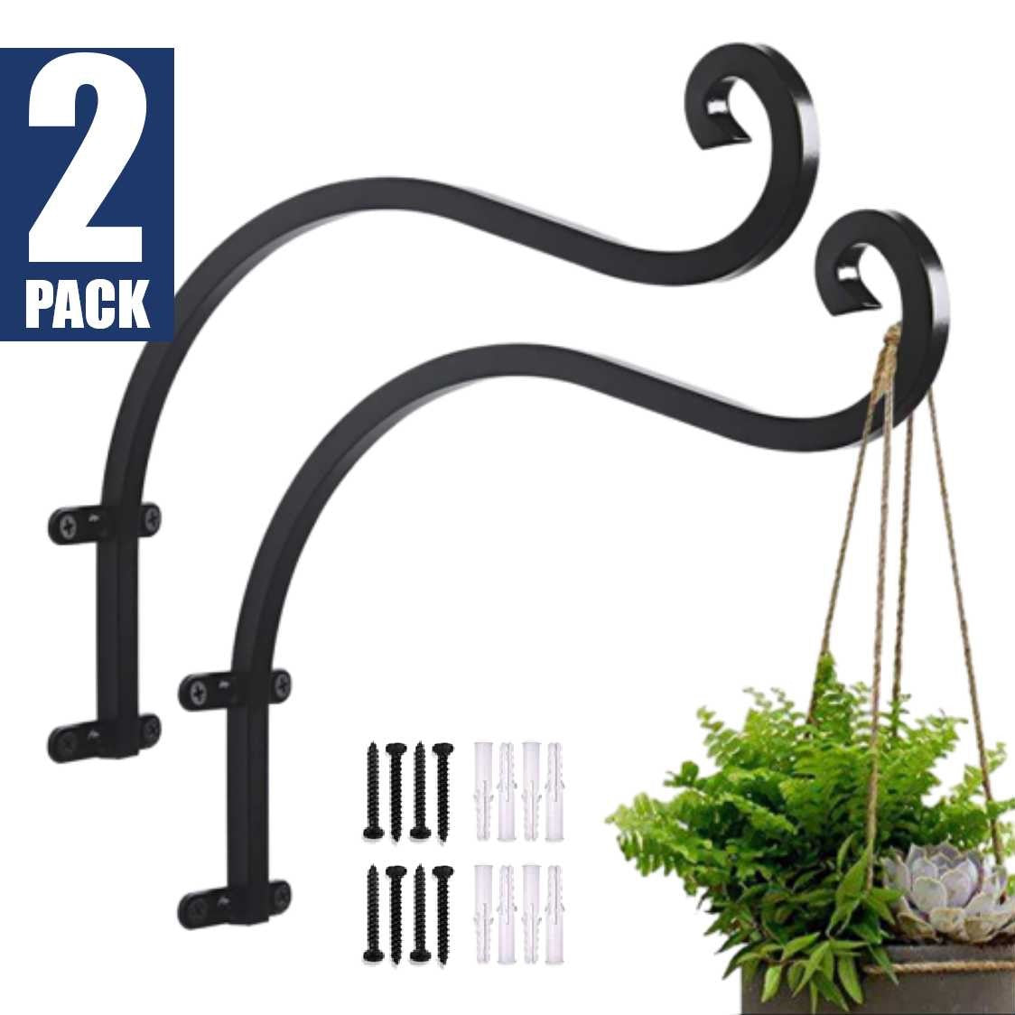 [High-Quality Material]: Our hanging basket brackets are made of thicker solid iron and carefully welded together, durable, and rustproof. With a thicker hook, there is no risk of bending or breaking under the weight of your heavy plants!