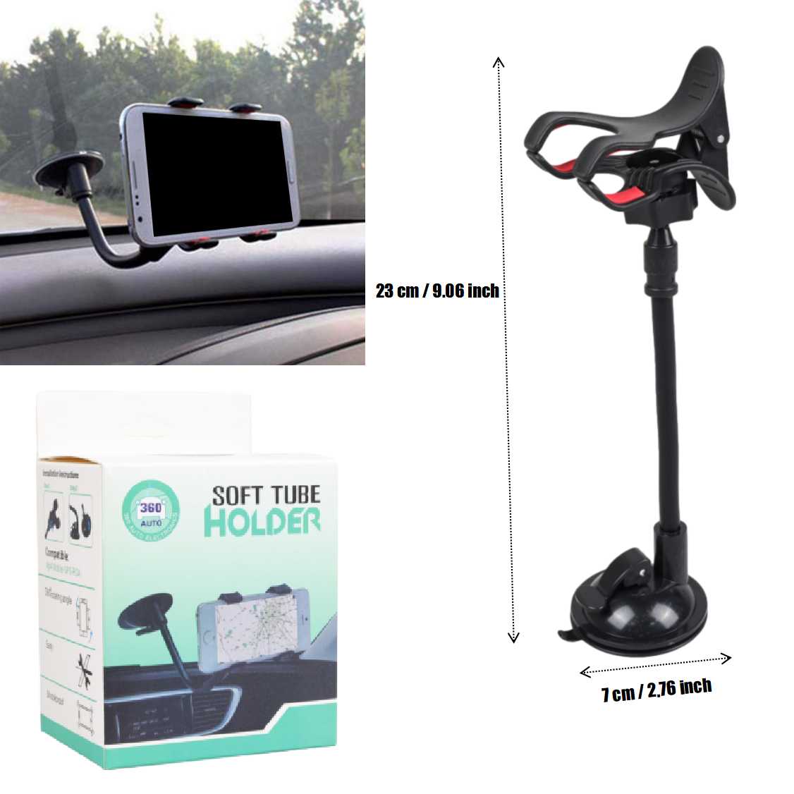 Secure your phone or GPS with this multi-functional car mount, featuring a sturdy suction base and a 360° adjustable gooseneck for easy viewing from any angle. The double clip design makes installation quick and stable.