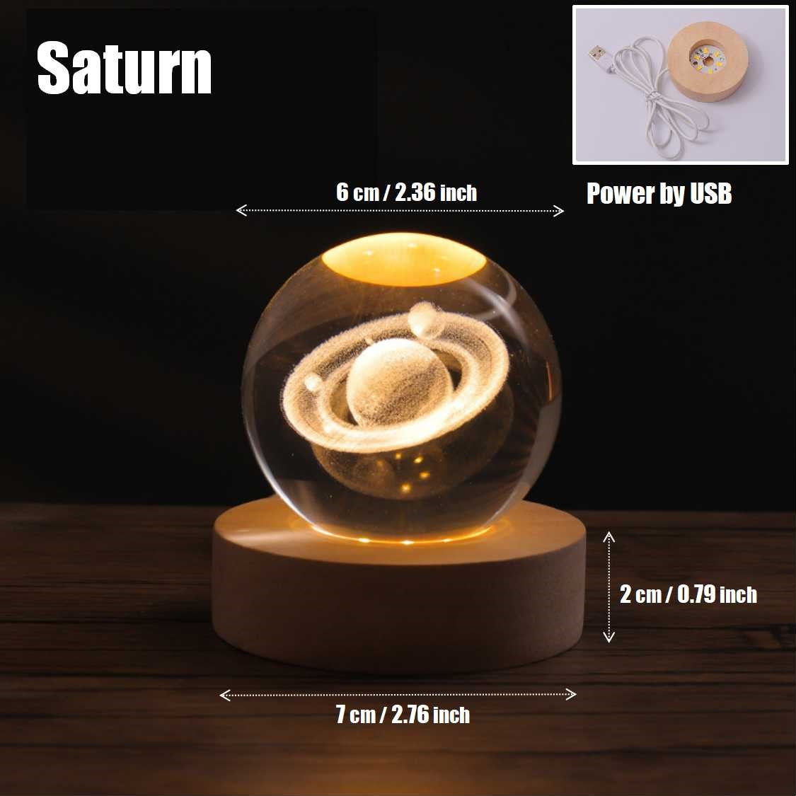 3D Saturn Crystal Ball with Wooden Base