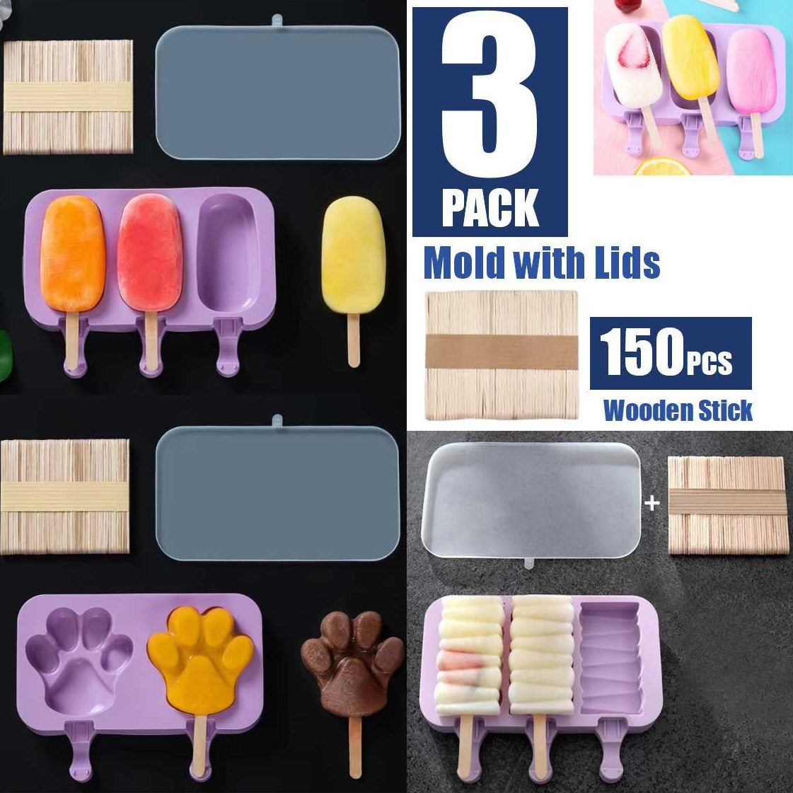 This listing is for 3 x Silicone Ice Cream Mold Set with 150 wooden sticks