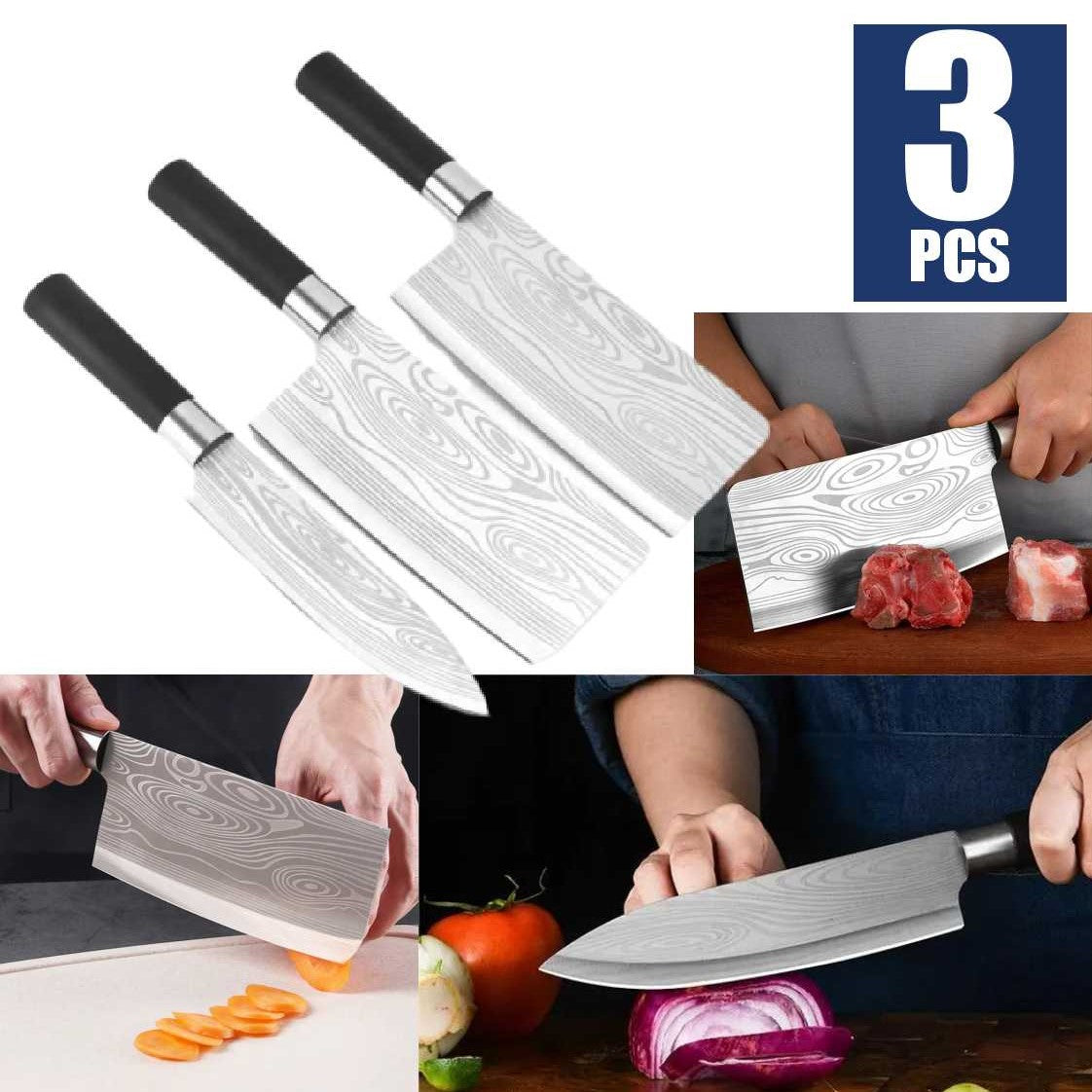 1 x 3-Piece Stainless Steel Damascus Cleaver Knife Set