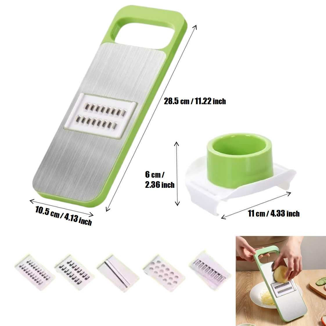 Versatile 5-in-1 Tool: Features slicing, grating, and julienning functions for preparing vegetables, fruits, and cheese effortlessly.