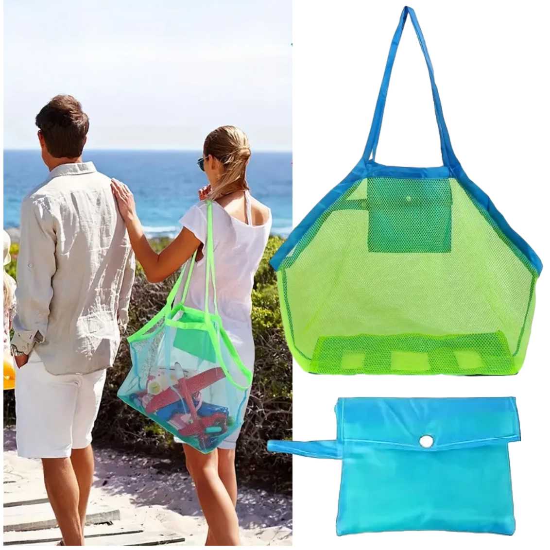 【Very Lightweight Mesh Beach Bag】 ---The mesh beach bag can be folded to a small size that takes little space, it is easy to store this mesh beach bag in your hang bag, drawer, or luggage case when not used it.
