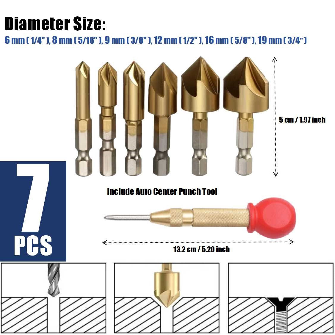 Countersink Drill Bits Chamfer Tool with Automatic center punch