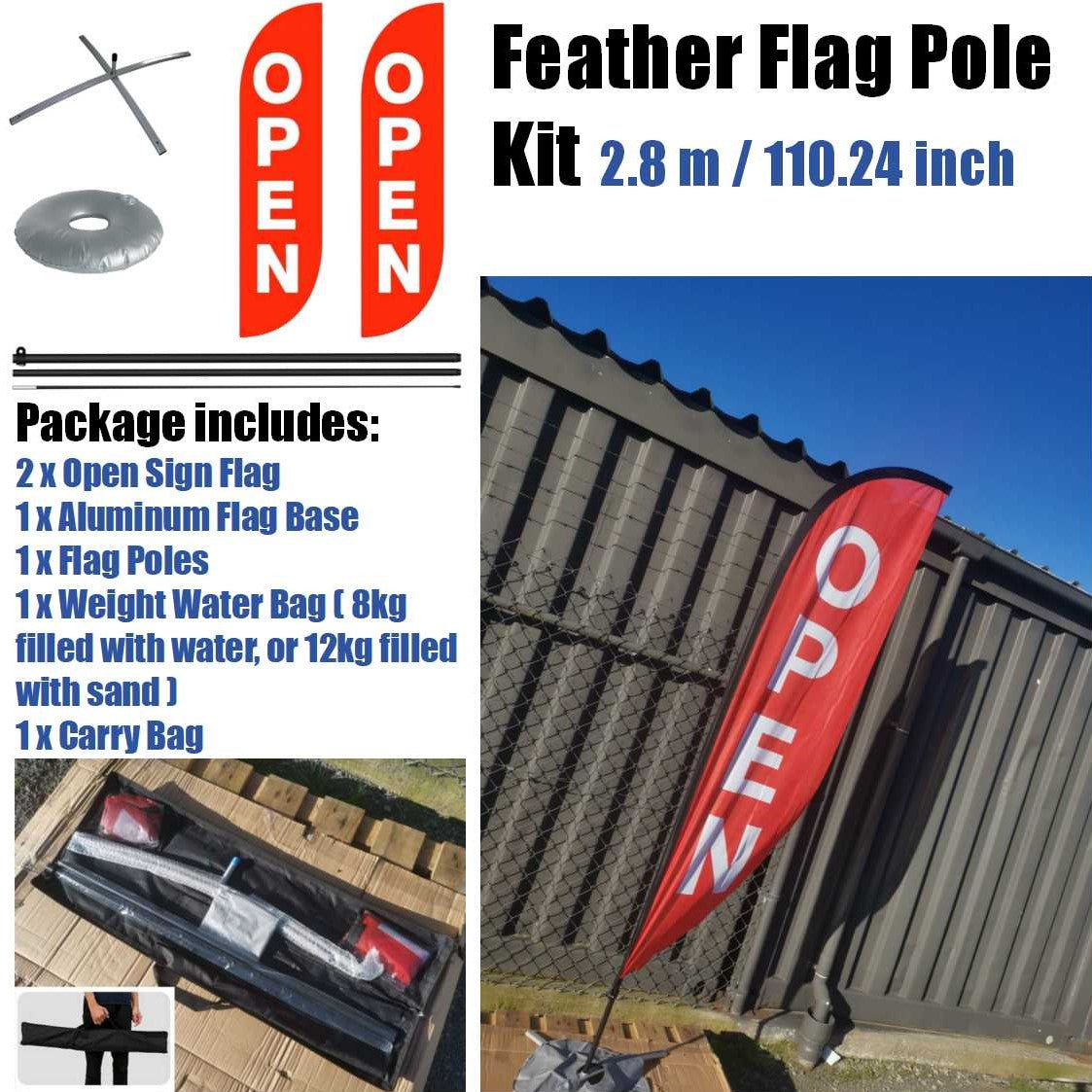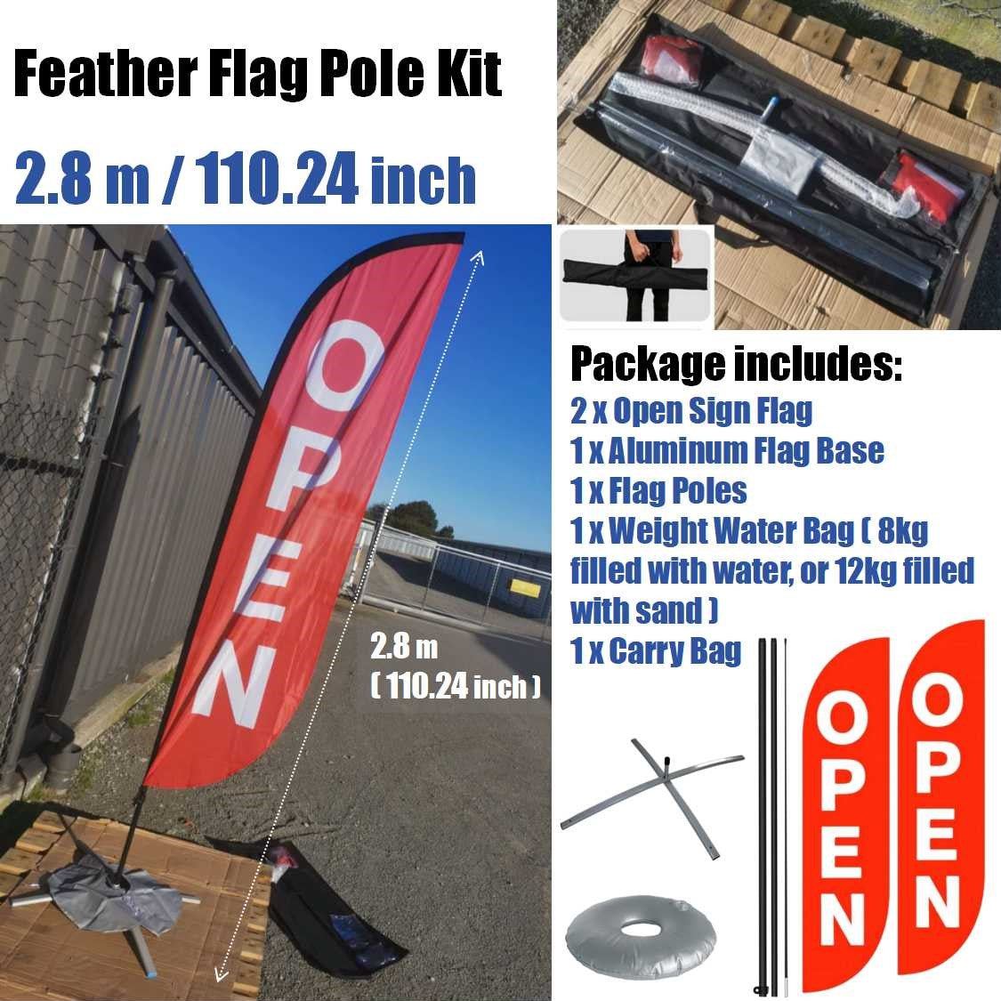 This listing is for 1 set of Feather Banner Flag (2.8m) Kits with 2 “OPEN” Flags with a carry bag