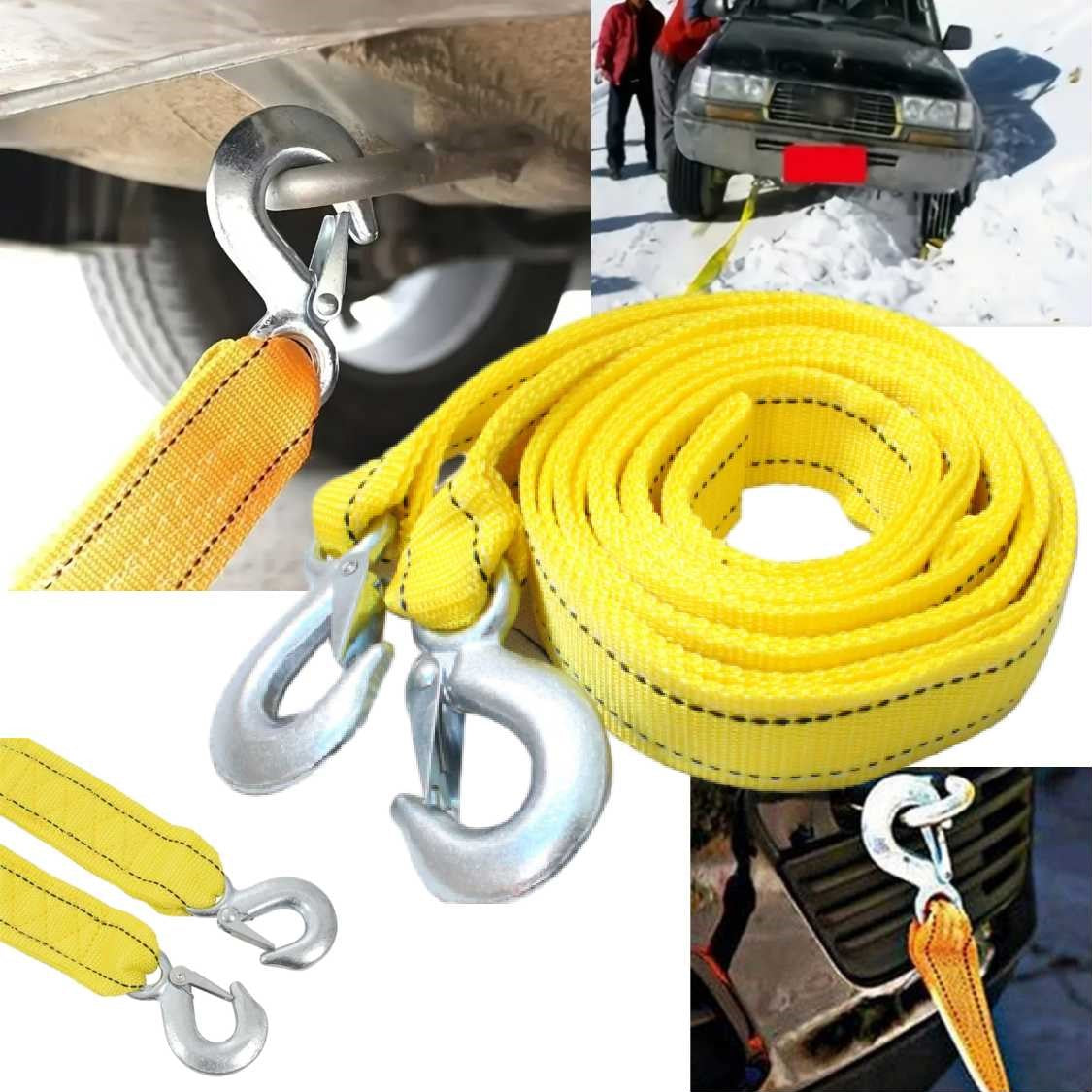 Reliable Design - Features durable metal safety hooks and a specially woven strap body for enhanced rigidity and secure towing. The bright yellow color ensures easy visibility, even in low-light conditions.