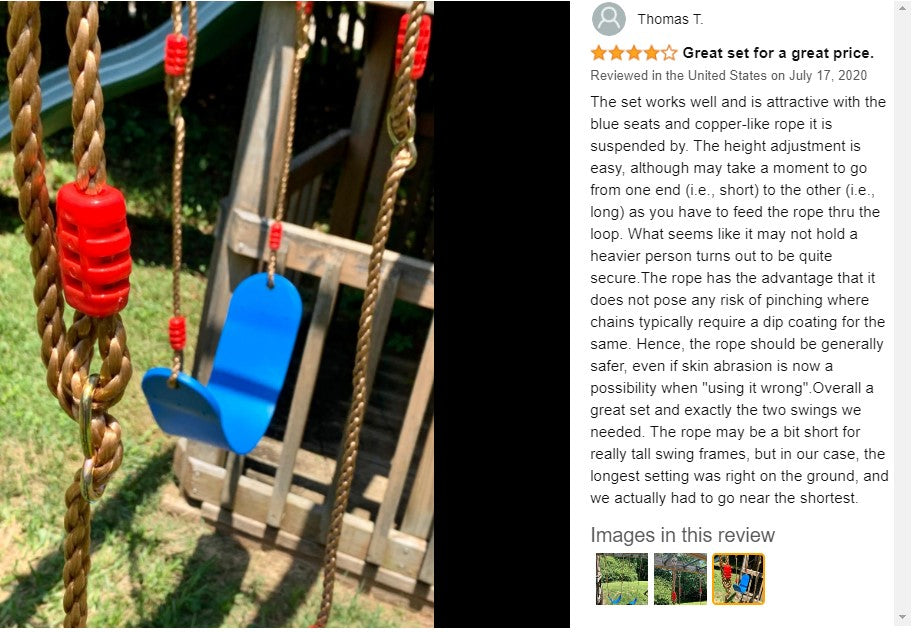 The Listing is for one set of Kid's Tree Swing with Adjustable Ropes Kits (including 2 x Tree Straps and snap hooks)