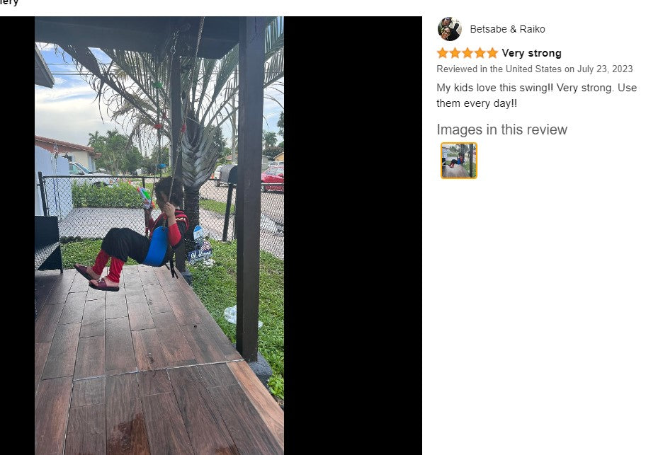 The swing with a sturdy design can hold up to 150Kg