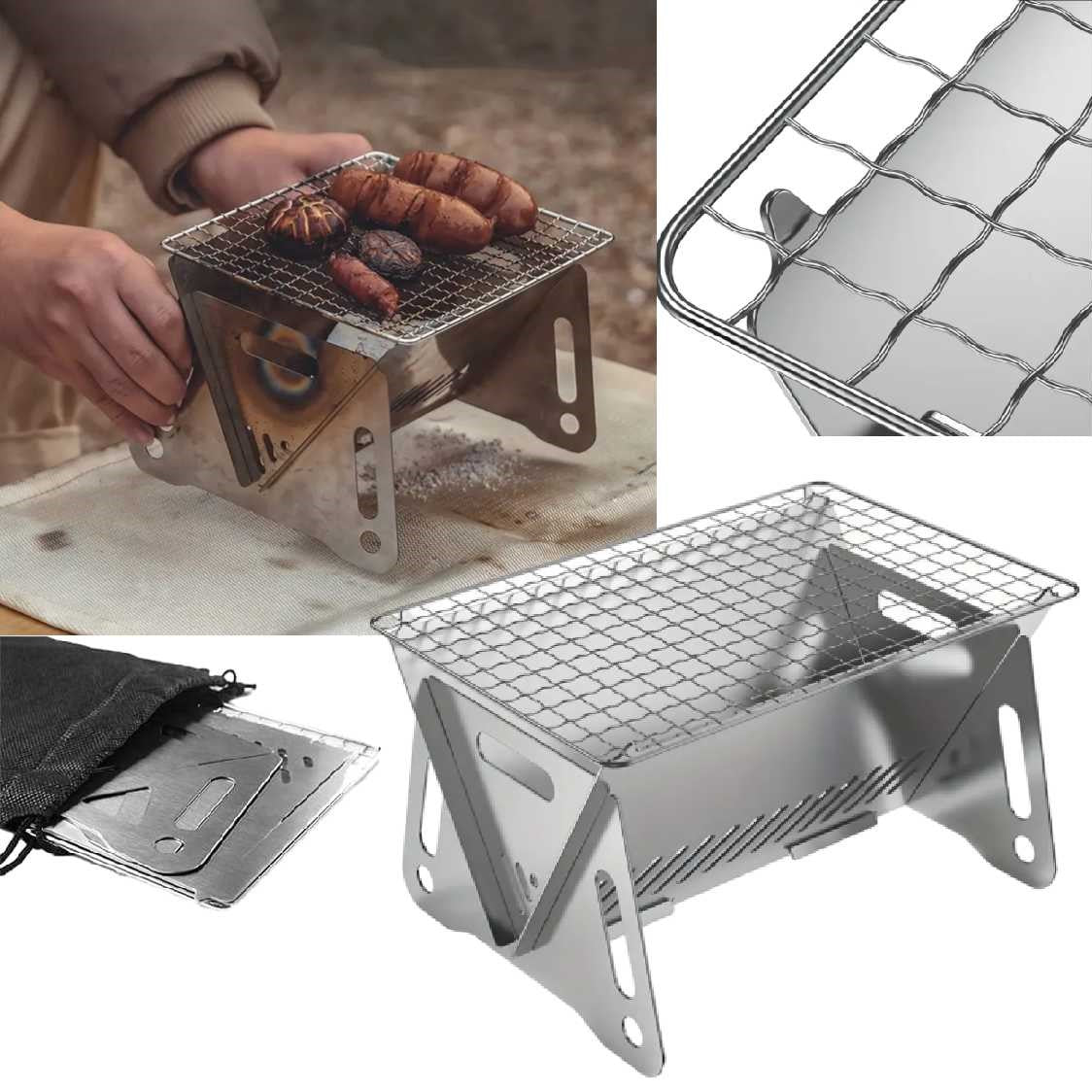 Portable Mini Charcoal Grill - Compact and detachable, this mini grill is easy to carry and store in the included bag. Perfect for 1-2 people, it’s ideal for camping, backpacking, small patios, tabletops, or emergencies.