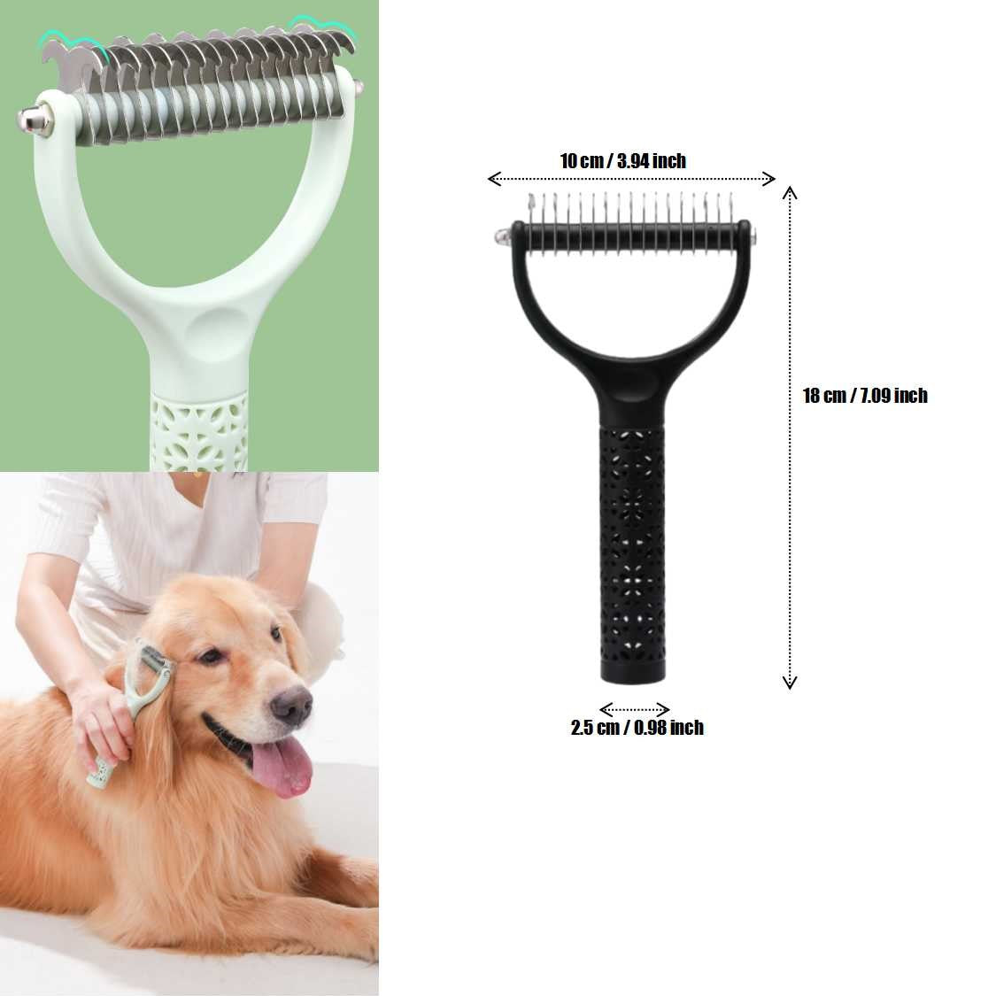 【Dual-Sided Design】: Start with 9 teeth side for stubborn mats and tangles and finish with 17 teeth side for thinning and dematting.