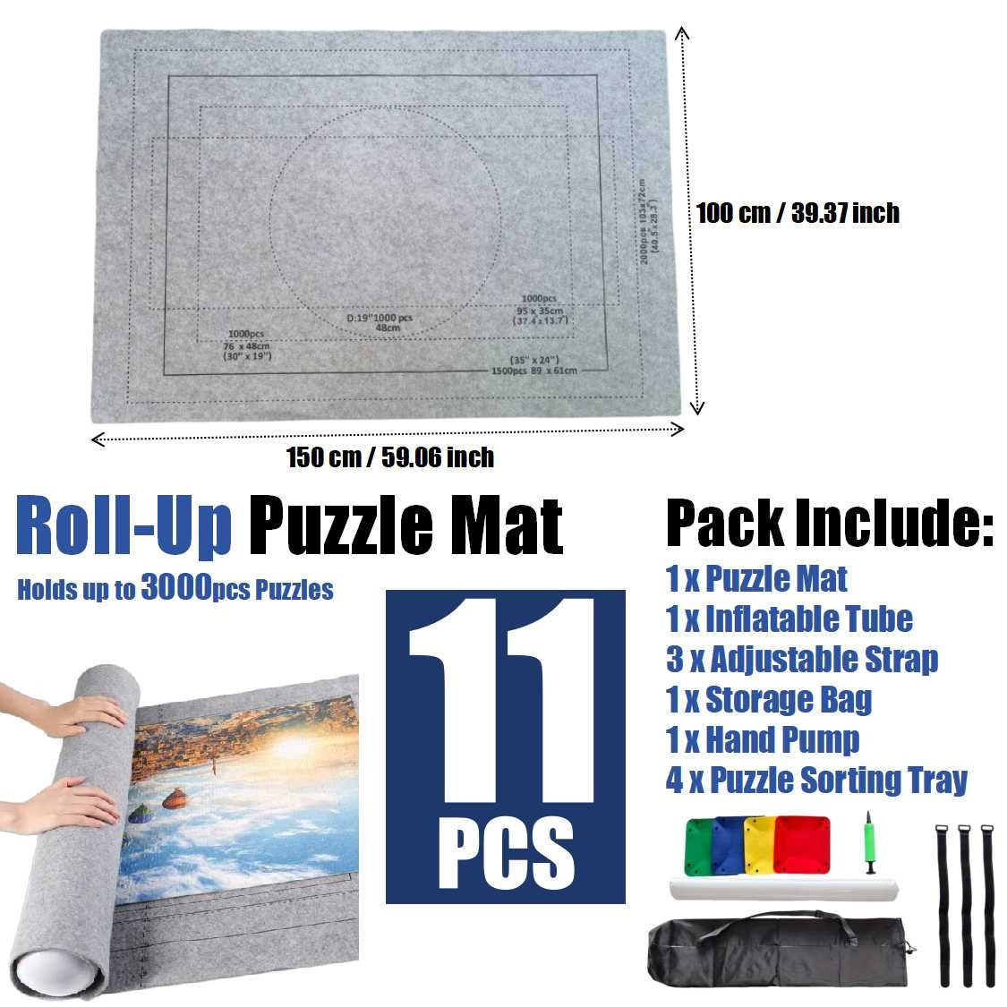 【Easy to store】: When you want to save the unfinished game, then place it on both ends of the blanket and roll up the blanket by applying uniform pressure. Then fix it with an elastic band. The attached long-term storage bag can store unfinished puzzles. This storage bag can not only be hung on the wall to save space but also can be carried around like a backpack.