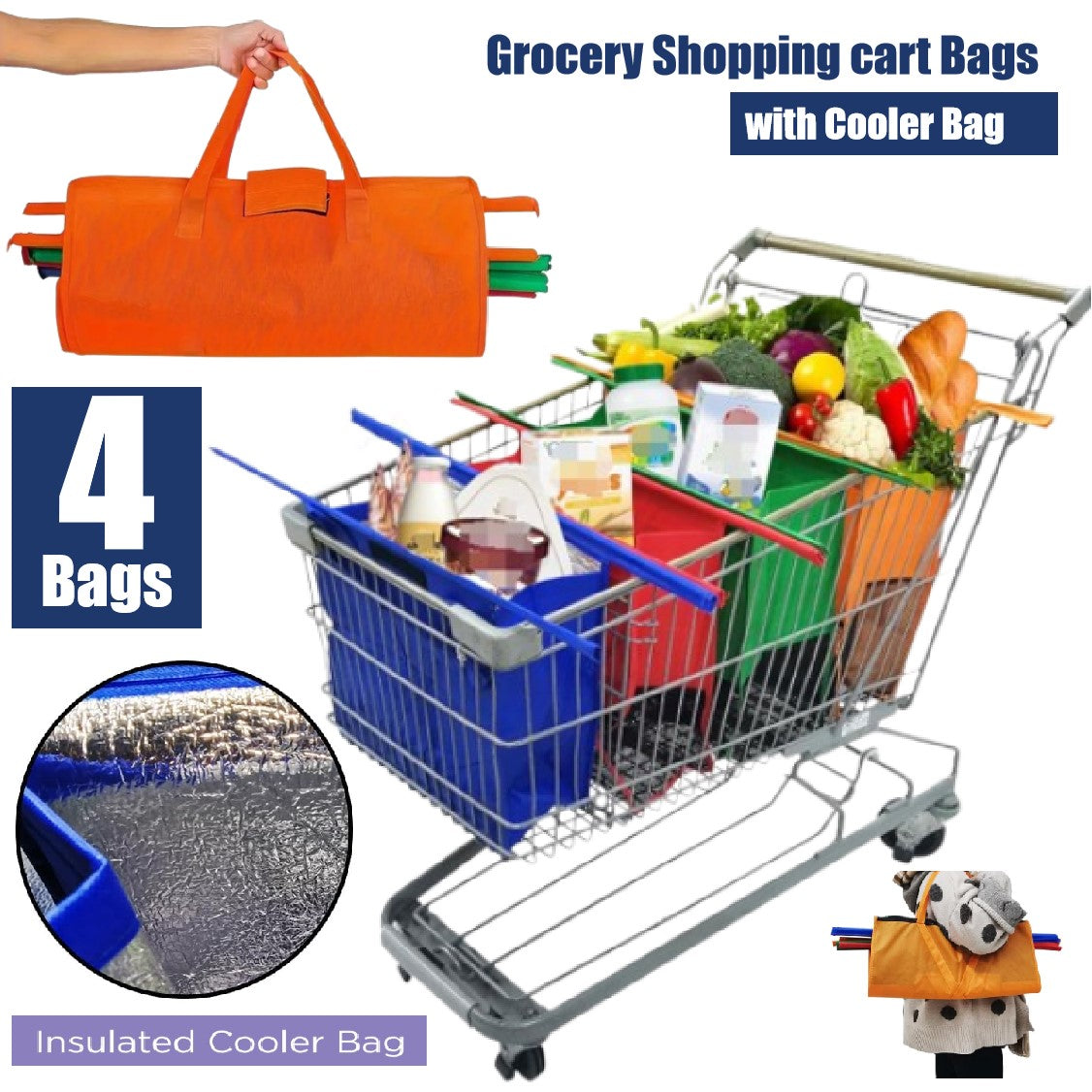 4Packs Trolley Bags Reusable Grocery Shopping cart Bags Cooler Bag